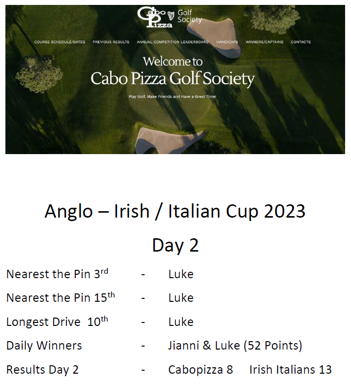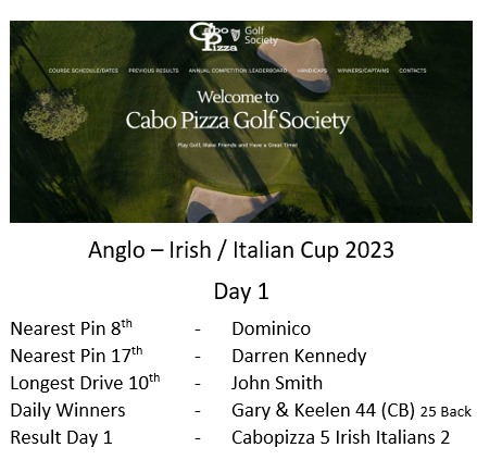 2024 - Hi everyone, we have a contingent from Ireland and Italy coming in October to take on cabopizza golf society, again similar format as previously and this year we are playing October 24th Santa Clara and 25th Mijas los olivos. The presentation this year will be the Friday night as flights back to Ireland or wherever are nuts moneywise from the Sunday. €200 entry includes the usual prizes and food on the Friday night. We are limited numbers wise folks so please get confirming asap  Thanks